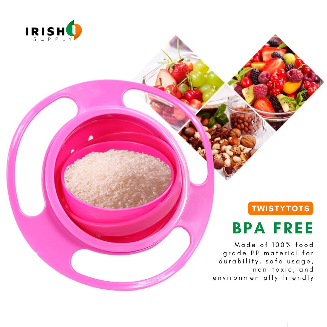Tired of cleaning up food spills repeatedly? Our TWISTYTOTS Spill-Proof Gyro Bowl is here to rescue you. Designed with innovative gyroscopic technology, this children's bowl ensures that snacks stay in place, preventing messy spills and saving you the hassle of frequent cleanup.