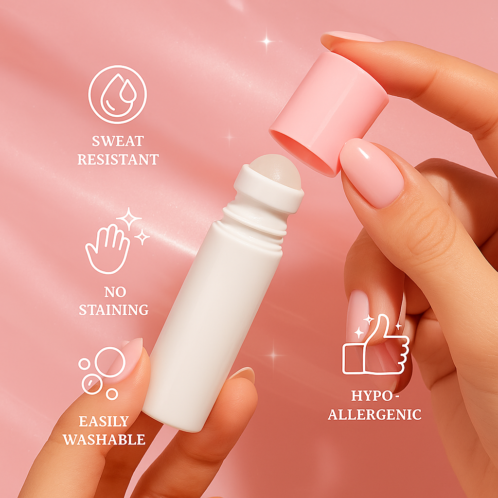 Nuestra Body Glue está hecha para pieles sensibles — hipoalergénica, a prueba de sudor, y se lava fácilmente con agua tibia y jabón 🛁🌸