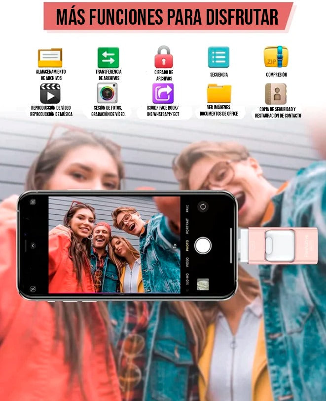 Esta unidad flash, memoria USB de almacenamiento externo, es compatible con iPhone, iPad, Android, PC y más dispositivos.